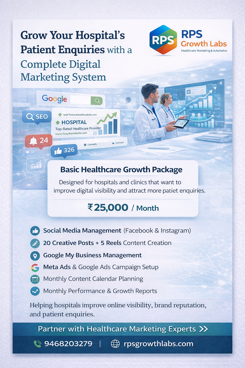 Hospital Branding • Doctor Branding • Patient Growth • Enquiry to OPD Conversion • Google Visibility